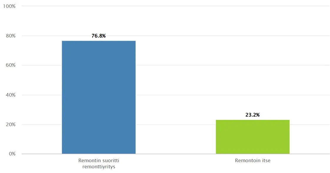 23,2% vastaajista teki remontin itse. Yleisesti tee-se-itse remontoijat olivat tyytyväisiä remonttiinsa, mutta myös virheitä sattui. Esiin nousi muun muassa ongelmia työvaiheiden välistä jättäminen työn valmistumisen nopeuttamiseksi sekä työn vaativuuden aliarviointi.